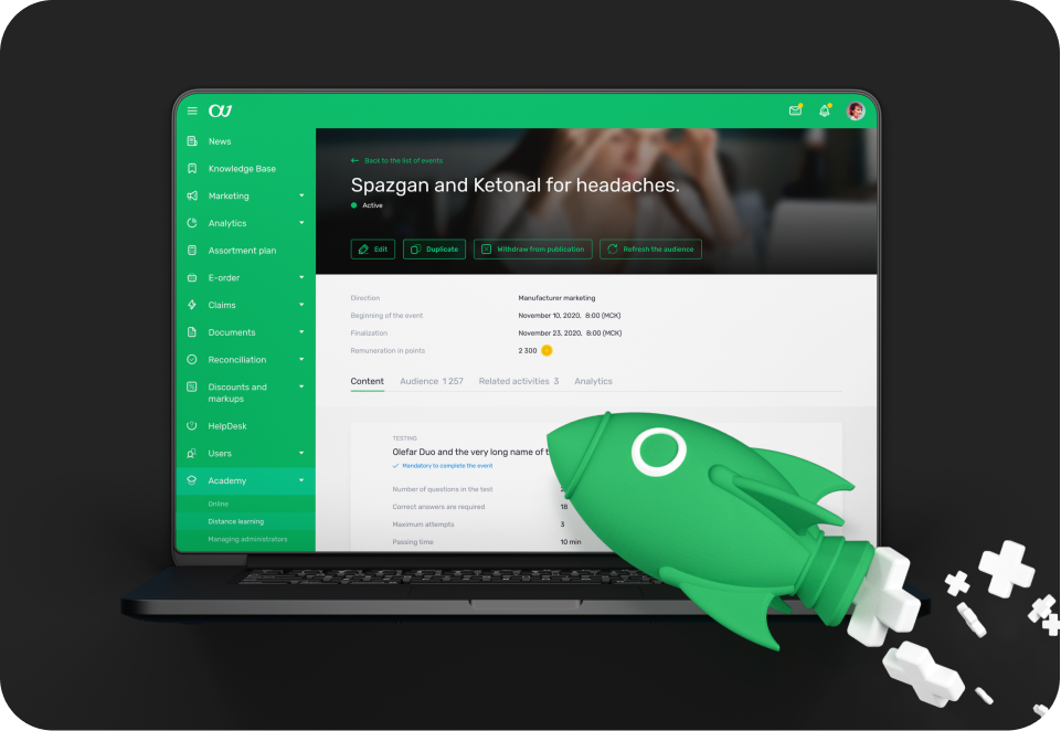Reduced the time for creating marketing events that stimulate sales of products by developing a unified system for creating and collecting applications for participation.